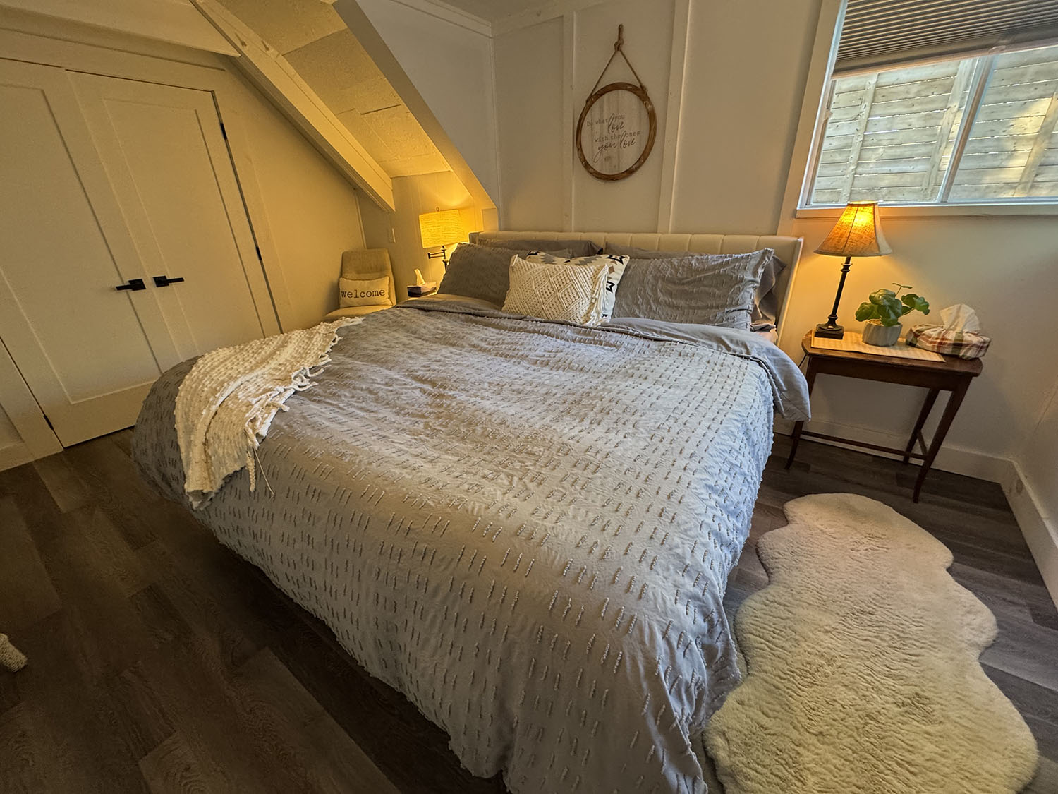 - The Hillside offers a warm, intimate space with whitewashed pine interiors, an open living area, and an L-shaped deck overlooking the water. Ideal for couples and small groups looking for comfort, calm, and unforgettable lakeside moments.